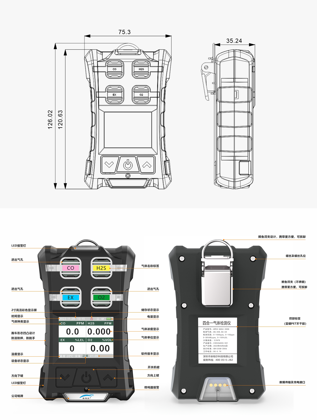 ☆ 高性能設(shè)計。最高支持10米防摔、支持水下1米深防水、防塵、防滑、防震,抗靜電,抗電磁干擾,可支持抗交叉氣體干擾;